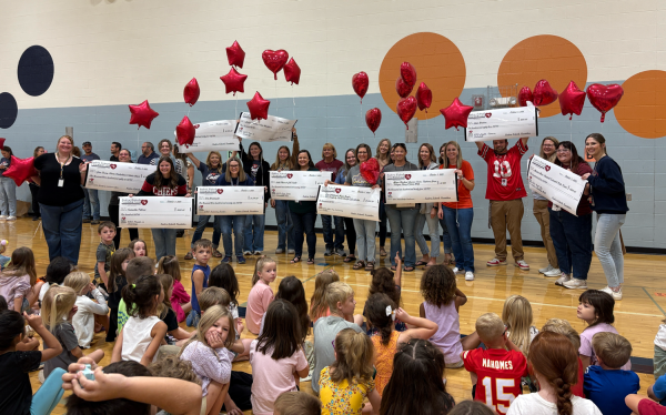 The foundation hand delivered over $42,000 in grants Friday to 25 teachers and principals across the district, marking the largest amount it has ever awarded. Its members came equipped with star and heart-shaped red balloons, too.